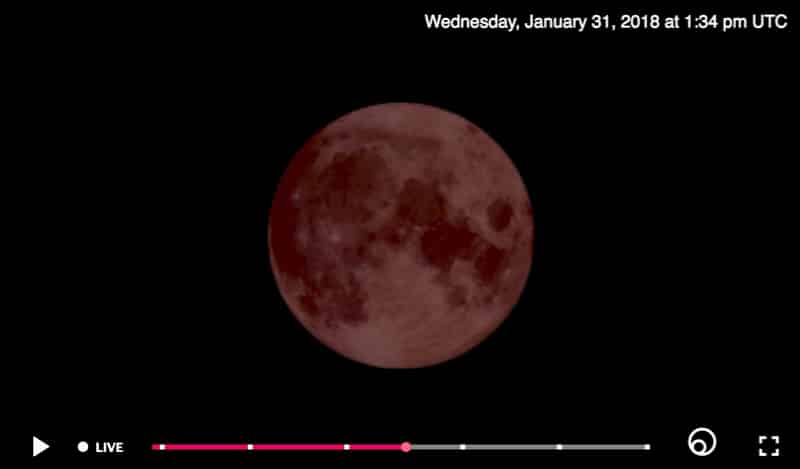 Simulation of the 2018 lunar eclipse 5 minutes after the maximum as seen from Hilo, Hawaii. Image credit: timeanddate