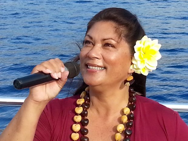 The tours operate from Kona with the Kanoa II, a 65-ft catamaran. The Kanoa II is an award winning, multi-million dollar vessel that offers plenty of shade (very important with our strong sun!), cushioned seating, flat screen televisions, a full sound system for live entertainment, a full-service premium bar, and three restrooms.