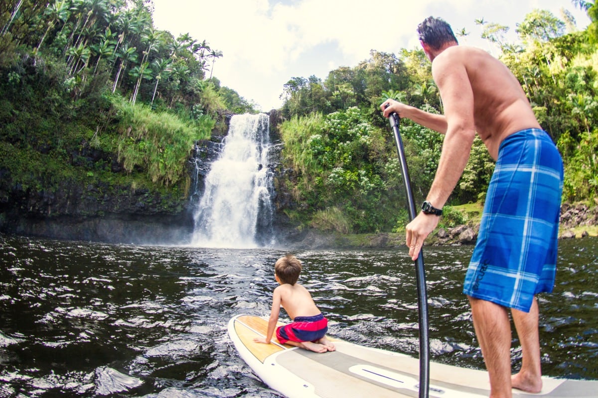 Large photoThe Kulaniapia falls look small, until you see the tiny person on a SUP board at the bottom! (click "large photo" on the top right to zoom out) Image credit: Hawaii Forest & Trail