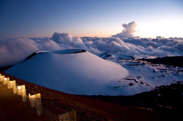 MaunaKea erupted last more than 4000 years ago and is not considered an active volcano anymore. The MaunaKea summit is the highest point of the state of Hawaiʻi, 13.796 ft above sea level. There have even been glaciers on the volcano during colder periods!