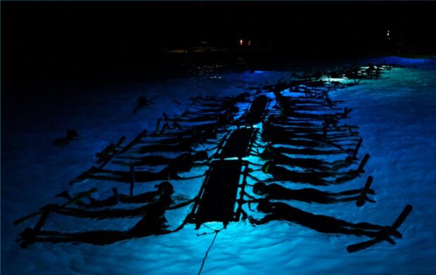 During the tour you hold onto a flotation device to which strong lights are attached. These lights attract plankton which, in turn, attract the manta rays. Image credit: Sea Paradise